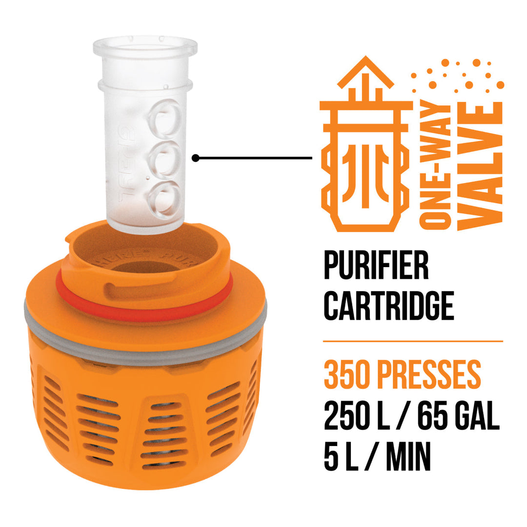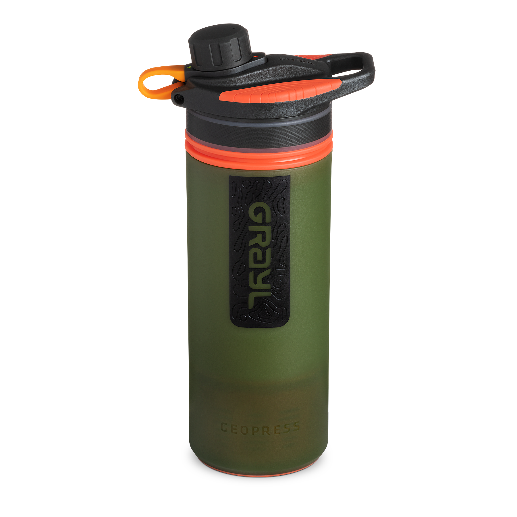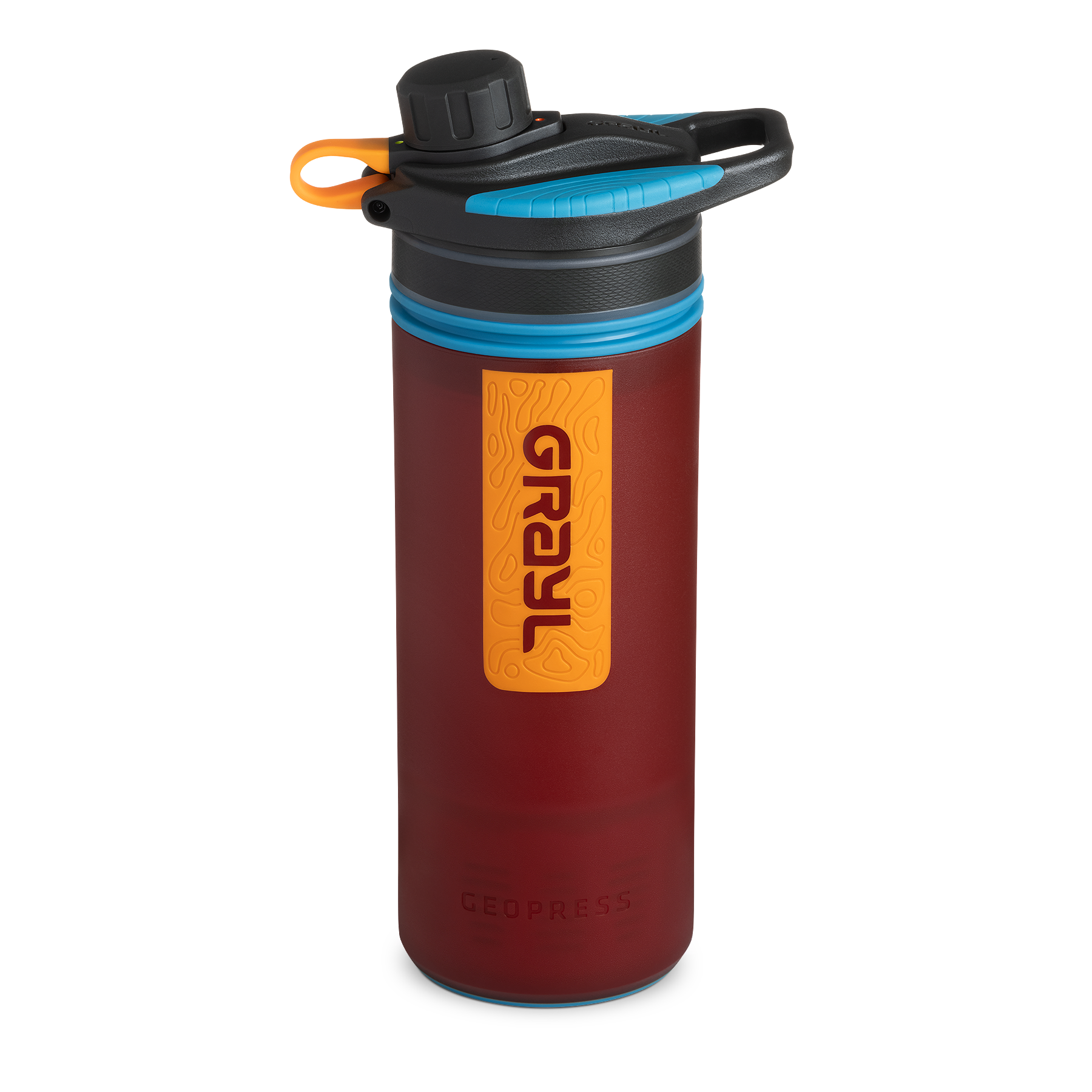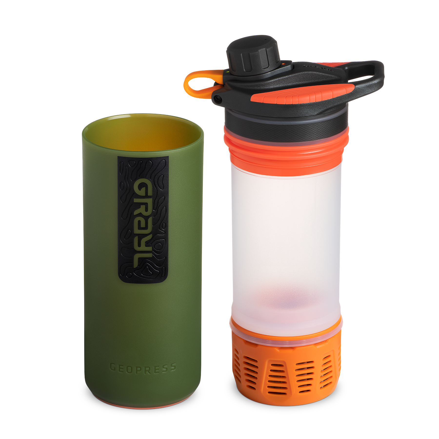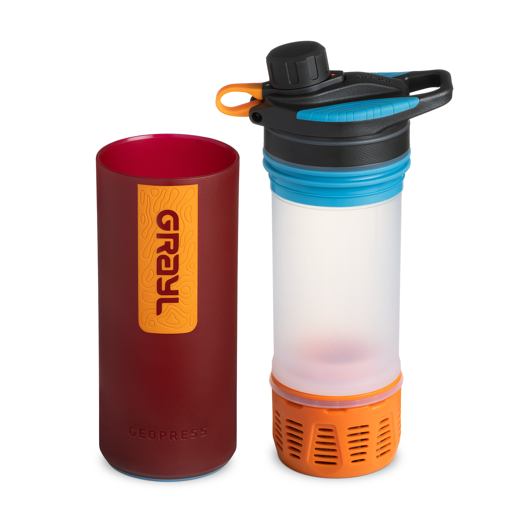 GeoPress® filters and purifies 24 oz of water, ideal for individuals and groups looking for a high capacity. UltraPress® purifies 16.9 oz and is great for individuals with limited space or when traveling with small pack side pockets.