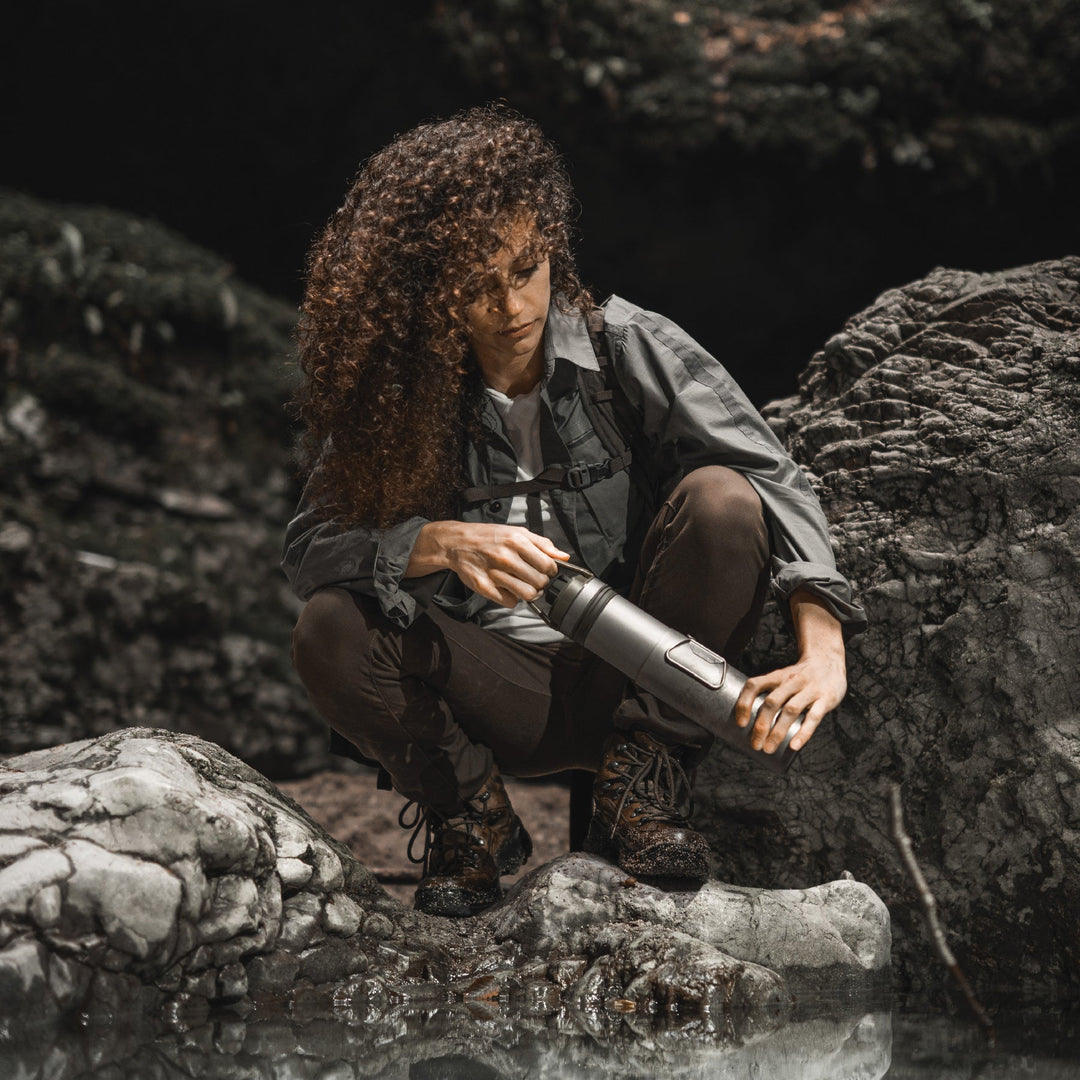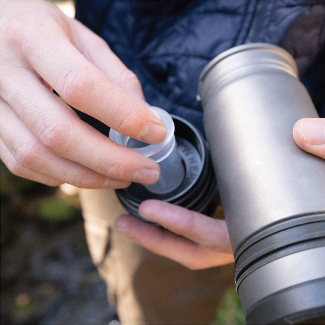 The most versatile water purifier ever dreamt, let alone built! The world's first titanium filter bottle provides unparalleled strength to weight ratio and meets the most challenging rigors of the outdoors. It’s drink-mix ready (hello electrolytes) and the Outer Ti Cup can be used to heat water and cook food near a fire or on a camp stove.