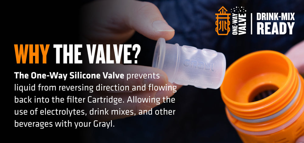 A feature no other drink-thru filter bottle can deliver, our One-Way Valve for the UltraPress® allows electrolytes and sport drink mixes to be added to clean purified water without compromising the integrity of the filter.