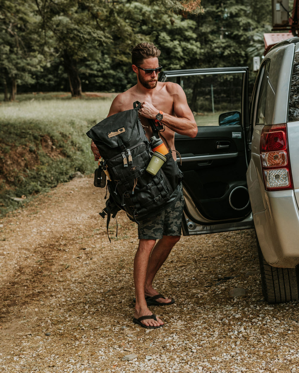Grayl ambassador Kyle Murphy loading a pack into a vehicle in Guatemala.